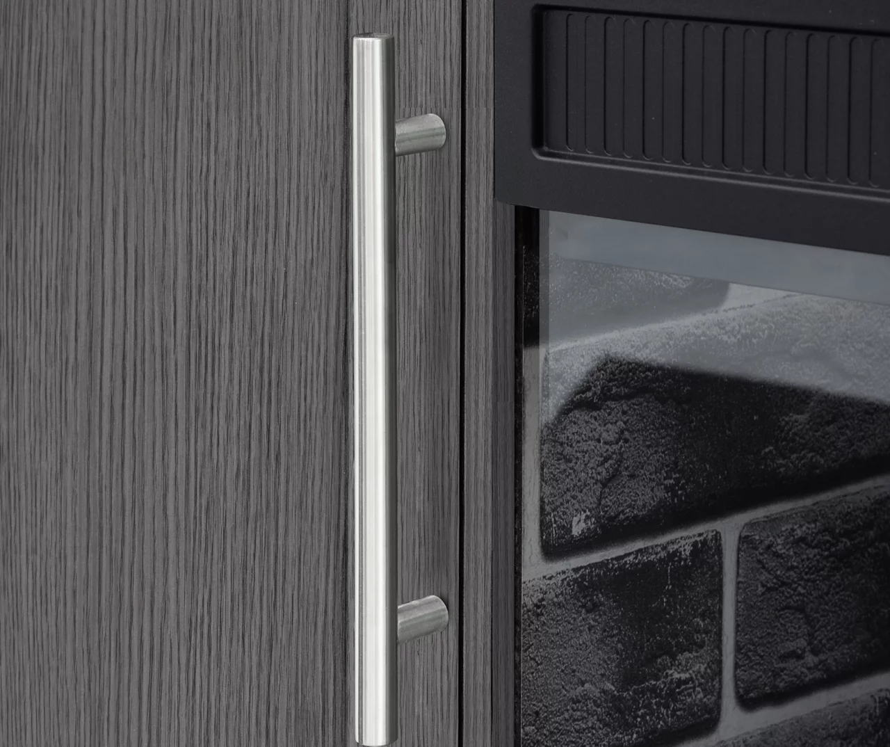 Enjoy the luxuries and glow of a fire year-round without the maintenance by using this Real Living electric fireplace console. The firebox insert showcases a faux brick design as Realistic Flame Technology brings roaring embers to life through various brightness and speed settings. Able to operate with or without heat, this stylish console is made with a gray finish frame that features open and closed shelving for all your media and entertaining needs.