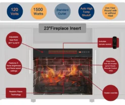 - 23″ Fireplace insert with faux brick look can be used year round with or without heat