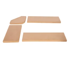 - Vintage feel with wainscoting details on the table apron and a planked top