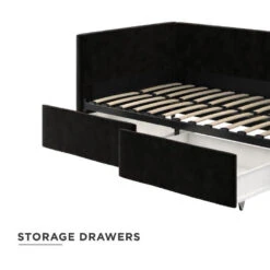 Make a bold statement with the DHP Tallie urban daybed with storage. This multifunctional furniture piece is defined by a boxy, clean-lined silhouette that promises to accentuate the look of your room. Made with a robust wooden frame, this daybed has a wood slat base that helps air circulate better. What’s more, it provides superior comfort without the need of a foundation and accommodates a standard sized mattress. Perfect for small living spaces, the Tallie daybed comes with two convenient drawers on casters that are useful to store personal belongings like extra bedding, accessories and more.