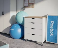 Whether youβre crafting, woodworking, painting, or just keeping up with Honey-Do Lists, an organized garage or She Shed is the blueprint to a successful project. The Vantage storage cart provides plenty of concealed storage thatβs easily moves from one place to the next. The storage cart made from laminated engineered wood with a beautiful weathered oak top for a clean and classic look to match any dΓ©cor. The four drawers are perfect for storing items out of sight while the cut-out style handles allow you to easily peek into each drawer to find what you need in a jiffy.