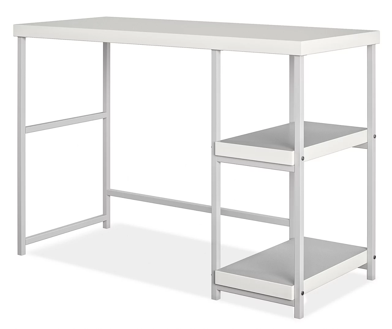 Your child can color and draw to their hearts content on the Ameriwood Kevin desk. Finish homework or work on art projects on the spacious desktop. The two open shelves provide space to store books, binders and craft supplies and keep your work surface clutter free. The crisp white finish seamlessly blends with any dΓ©cor as the reversible side shelves allow you to have either white or gray shelves to match your child’s style.