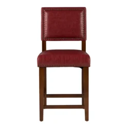 Nailhead trim gleams against dynamic red upholstery to give this counter stool a rugged effect that grounds any space with timeless style. Clean, classic lines suit a variety of settings from rustic to contemporary while the padded seat and foot rests offer comfort and stability.