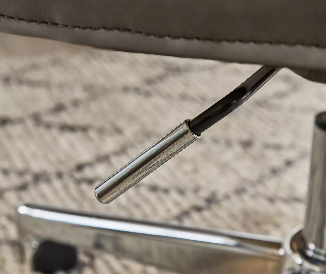 Say hello to your new favorite work colleague, the Leighton desk chair. You’ll sink into its soft memory foam cushions and never go back to any other office chair again. Its silhouette descends graceful arms from its barrel back to embrace a comfortably cushioned seat that’s accented with nail head trim. And if you’re always on the move, the durable rolling casters are suited for any floor type. A combination of handsome bonded leather and crisp chrome detailing, this desk chair easily transitions between traditional and modern decor.