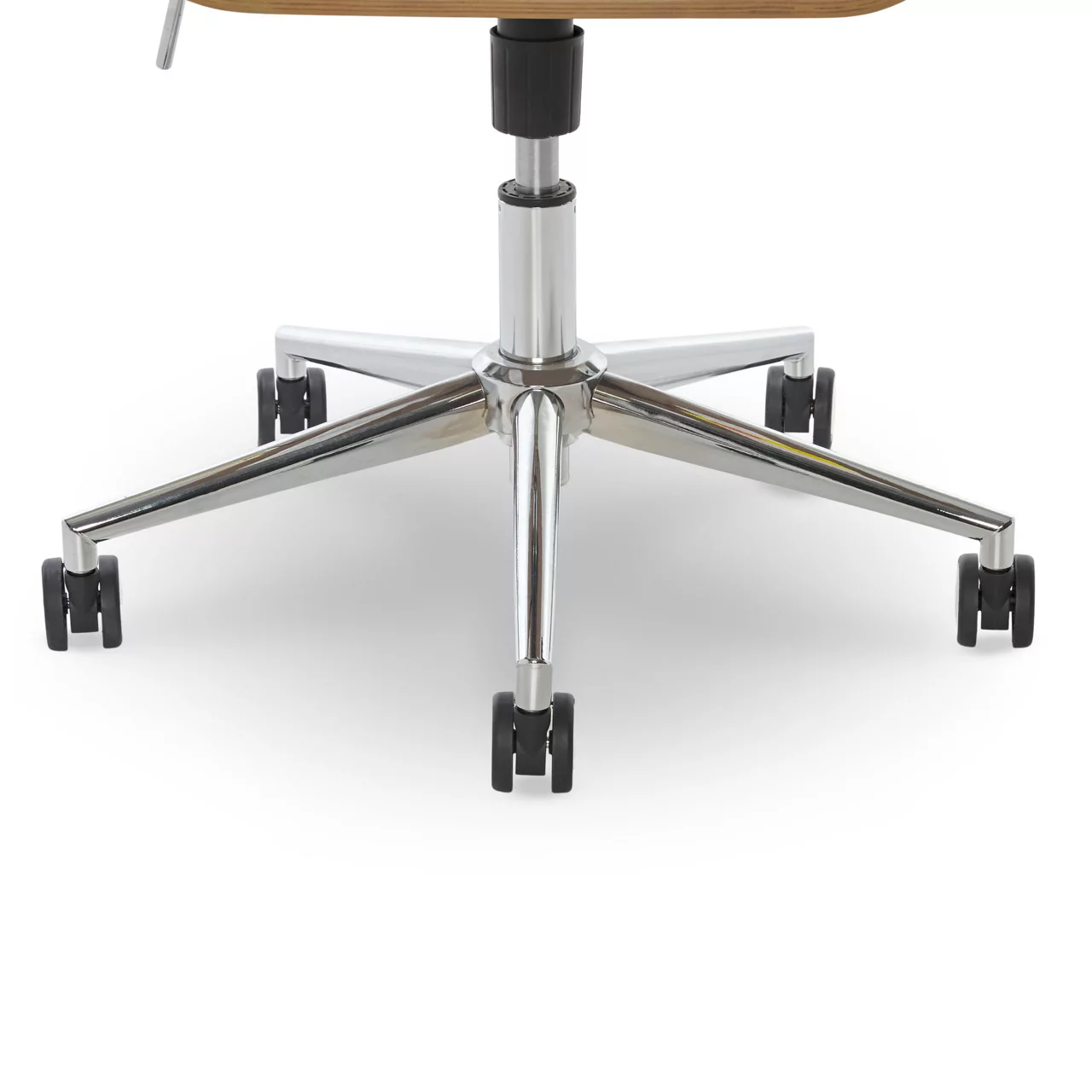 Make a chic statement in any space with this elegant office chair. Thanks to soft tailoring on the comfortable cushion and bentwood accents, this stylish armless design adds a dose of charm to any setup. The fabric’s color is ideal for accessorizing a home office, bedroom or even dorm room. You’ll look forward to getting work done once you have this comfortable chair waiting for you. The modern chrome accents and wood seat elevate this chair above those boring office chairs out there, making this task chair the perfect statement piece for spaces big and small. Whether you’re setting up a home office of making your own space at work, the modern bentwood seat and its sophisticated color set this chair apart from other office chairs. Comfy and classy, this chair does it all.