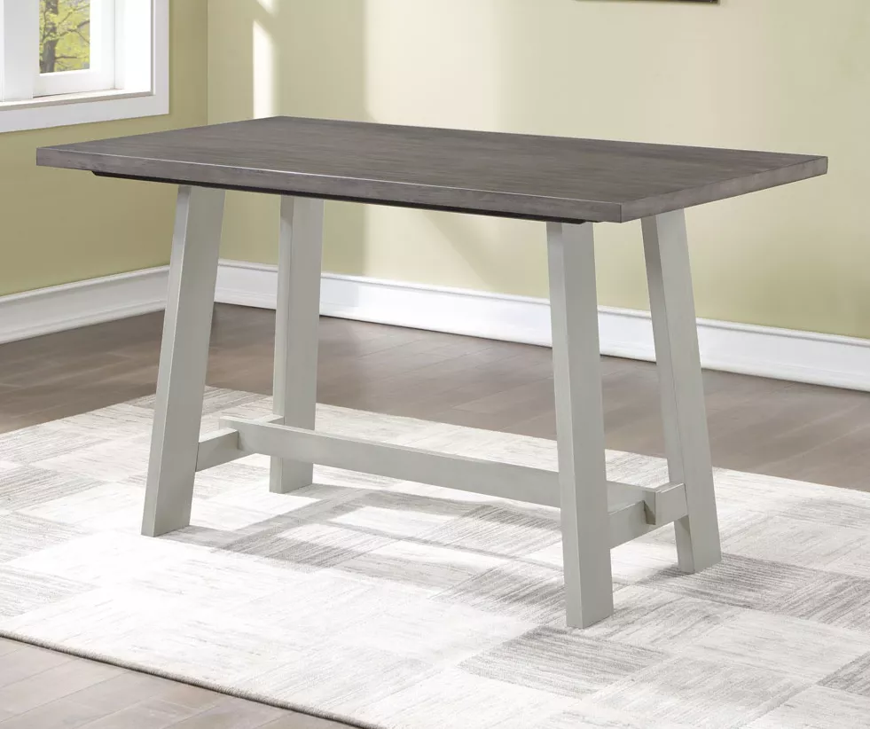Offer a place to gather for meals and conversation with the Sarasota pub table. Featuring an arts and crafts-inspired design, the table is constructed of Asian hardwood solids, Acacia and Mango veneers along with engineered hardwoods in a two-tone smokey alabaster and honey finish. Comfortably seating up to six, it’s a great addition to an eat-in kitchen or dining space.