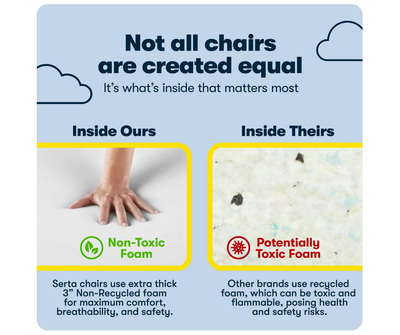 Bring relaxation to your busy workday with the Serta Executive Office Chair. Serta kept comfort in mind while designing this desk chair with luxurious layered body pillows, a contoured lumbar zone and padded armrests for all day ease and exceptional support during long periods of sitting. The waterfall seat edge reduces pressure on the back of the legs and increases circulation, which helps decrease fatigue while seated. The ergonomic office chair features both recline and seat-height adjustment settings, allowing you to find your optimal seating position. The heavy-duty painted base with scuff-resistant foot pads is designed for long-lasting, reliable use. This desk chair is upholstered in supple bonded leather with contrast stitching for comfort and style in any workspace.